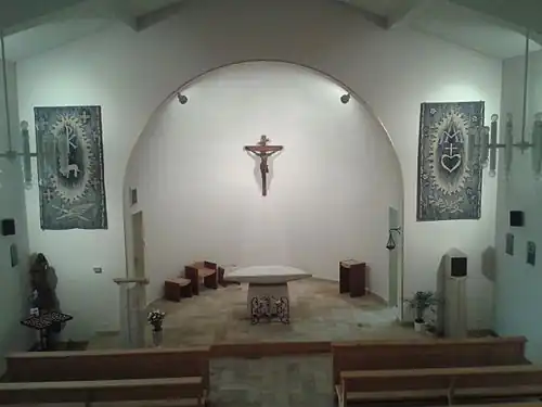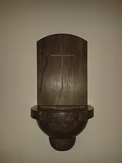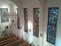 - ↑ L'ancien siège en bois du célébrant de l'assemblée liturgique (en général celui du prêtre) est conservé dans la petite salle de catéchisme située dans les combles aménagées de l'église.