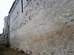 L'église se compose, de l'ouest vers l'ouest, d'une nef à vaisseau unique. Du côté sud, des contreforts plaqués simulent trois travées de longueur inégale, le mur nord de la nef étant dépourvu de contreforts ; quatre autres contreforts rythment la façade. Le mur nord montre des vestiges, en petit appareil, sur lesquels ont été remontées les maçonneries de la nef. Vient ensuite un avant-chœur moins large que la nef composé d'une travée sur plan carré qui supporte le clocher. L'édifice est terminé par un chœur à chevet plat, de même largeur que l'avant-chœur ; il est épaulé par six contreforts, deux sur chaque mur gouttereau et deux au chevet ; une sacristie au toit en appentis est accolée au mur nord du chœur. Sur le mur sud de l'avant chœur et du chœur se distingue bien la reprise de construction du XIIIe siècle, la maçonnerie ancienne formant un ressaut.