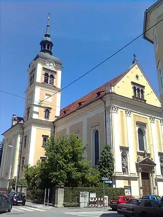 - (de) Cet article est partiellement ou en totalité issu de l’article de Wikipédia en allemand intitulé « Vinzenzkirche (Graz) » (voir la liste des auteurs).