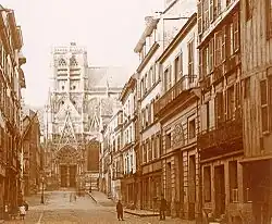 À cette époque, seuls les côtés ouest (place Saint-Vincent, traversée par la rue de la Vicomté), et sud (longé par la rue Saint-Vincent) de l'église étaient visibles par le public, les deux autres côtés (nord et Est) étant bordés de bâtiments privés,