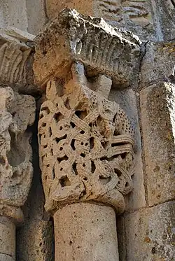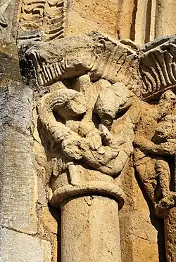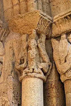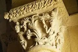 Le chapiteau est une piètre réplique d'un des grands chapiteaux de l'abbaye de La Sauve-Majeure.