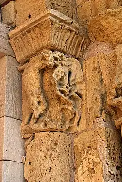 Le chapiteau a souffert des destructions malveillantes : tous les visages ont été dégradés, sauf celui d'Isaac.