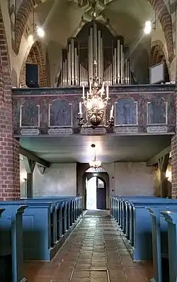 Les peintures représentant les apôtres sur la balustrade et la façade de l'orgue sont peintes par Jonas Bergman (fi) en 1759-1760 et le retable représentant l'Eucharistie est aussi son œuvre.