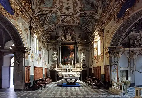 La chapelle du Christ Noir des Miracles est décorée d'un plafond à caissons d'époque Renaissance. Le Christ noir, en corse U Cristu Negru, dans la niche au-dessus de l'autel, a été trouvé en mer par deux pêcheurs d'anchois Camugli et Giuliani en 1428 selon la légende. Il est fêté chaque année le à Bastia[4].