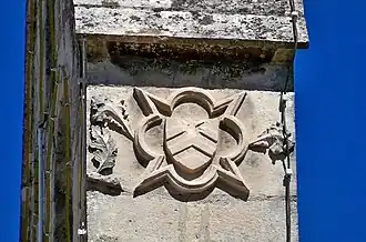 Chacune de ses faces latérales est ornée d'un blason sculpté dans la pierre et inséré dans un cartouche agrémenté de feuillages.