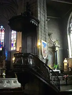 L'autel de la nef de droite est le seul autel subsistant du XVIIe siècle[1]. La chaire, de style Louis XV, est en acajou massif et sa rampe en fer forgé est classée monument historique[5]. Les stalles datent du XVIIIe siècle. Le maître-autel, en marbre blanc et bois doré, est l’œuvre du sculpteur Thomas Louis. Il fut consacré . La sainte-table, en marbre blanc, est datée de 1903[1].