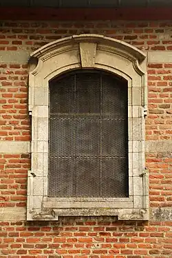 Cette façade est prolongée vers l'ouest par une chapelle éclairée par une belle fenêtre dont l'encadrement de pierre blanche présente un arc surbaissé à clef en saillie, surmonté d'un puissant larmier.