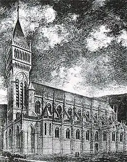 Pourtant, quand le chœur fut achevé en 1933, les travaux de l'église sont brutalement interrompus et le bâtiment est fermé provisoirement. L'abbé Court reprend finalement en 1948 la paroisse et reprend les travaux. Le projet initial fondé sur les plans de l'abbé Quinnez est abandonné au profit d'une esquisse de M. Dumas, architecte suisse. Les nouveaux plans présentent alors un édifice associant le style néogothique et le style moderne, où s'intègre un clocher droit de 31 mètres de haut surmonté d'une croix, bien que cette dernière soit finalement rejetée par une commission d'art sacré en 1952.