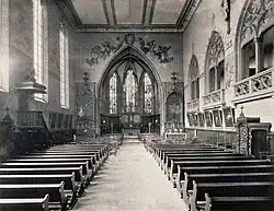 Parties gothiques (cloître et chœur) de l’église Sainte-Madeleine. La nef reconstruite originellement édifiée par Fritz Beblo.