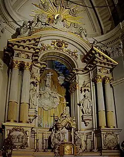 Les chapiteaux ioniques de la nef présentent des cartouches à tête d'angelot qui portent les armes du Carmel, de Jésus, Marie, Joseph et Thérése. Deux cent quarante moines sont toujours inhumés sous la chapelle.