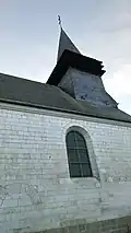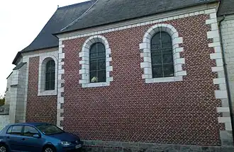 Cette petite église a été construite en brique et pierre. Sa façade est surmontée d'un clocher avec une toiture en flèche recouverte d'ardoise.
