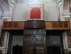 - sur le maître autel, le retable du Saint Sacrement, en bois doré, du XVIIe siècle.