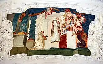 Les fresques du chœur des frères ont été peintes par Johann Baptist Zimmermann dans les années 1711-1713. Elles sont cernées de cadres chantournés en stuc et illustrent des moines chartreux[10].