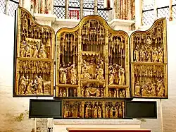 - Le tabernacle, œuvre de Klaus Grude en 1479. Il est décoré d'un millier de petites unités de bronze ou de dorure et se trouve au mur nord du chœur. Il mesure 9,5 mètres de hauteur.