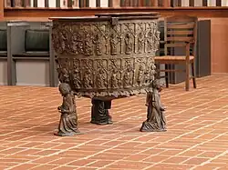- Des fonts baptismaux de bronze, œuvre de Hans Apengeter (de) datant de 1337. Ils se trouvaient avant 1942 à l'ouest de la nef et sont aujourd'hui au milieu du chœur.