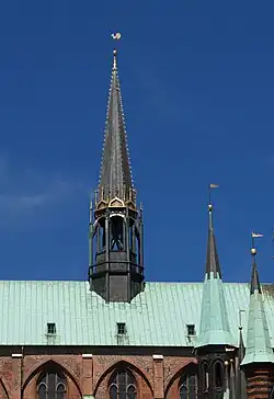 Vue sur les flèches de l'église Sainte-Marie située à Lübeck, dans le Schleswig-Holstein. | ||||