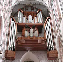 Les grandes orgues ont été fabriquées à la commande du maître d'orgue Martin Flor en 1515-1518 pour une somme de 10 500 marks lübeckois. Le facteur d'orgue Barthold Hering place un grand orgue au mur occidental qui remplace celles de 1396. Ce nouvel orgue a 2 claviers, un pédalier et trente-deux jeux et c'était en Occident le seul instrument de la sorte du gothique tardif. Il est agrandi au cours des âges, comme par exemple en 1637-1641, grâce à Friedrich Stellwagen, et sert de modèle à d'autres églises telles que celle de Sainte-Marie de Stralsund.