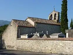 - ↑ Reproduction de la dédicace à l'entrée de la nef de l'église.