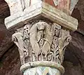 Les colonnes de l'abside portent des chapiteaux sculptés caractéristiques de l'éclosion de l'art roman à Poitiers. Outre des corbeilles d'acanthes, sont aussi figurés des quadrupèdes cabrés et des lions. Ces derniers, gardiens du sanctuaire, sont souvent à l'honneur dans les églises romanes du Poitou. Un chapiteau historié associe le péché originel, visible dans le déambulatoire, et le prophète Daniel dans la fosse aux lions entre Habacuc et l'ange. Les deux lions lui lèchent les pieds.