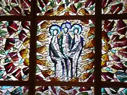 Elle est ornée sur la façade principale d'un vitrail de la Sainte Trinité par le verrier Henri Guérin[1].