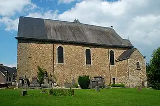 - une église romane de la fin du Xe siècle ou du début du XIe siècle[1], dotée d'un petit chevet rectangulaire et d'une tour à l'ouest[4]