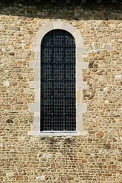 - une église carolingienne construite durant la seconde moitié du IXe siècle[3], précédée d'une tour à l'ouest[1],[4]