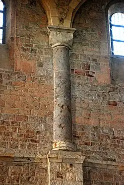 Colonne engagée à chapiteau cubique décorant les parois de la nef.