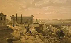 L'église domine la colline[1], c'est pourquoi elle est visée par les canonnades du siège de Sébastopol pendant la guerre de Crimée. En août 1855, un énorme trou crève la toiture et en septembre l'édifice prend feu; néanmoins la colonnade du portique résiste. Pendant l'occupation de la ville, les statues de marbre sont dérobées. Pendant trente ans, l'édifice demeure à moitié en ruines et complètement abandonné, la municipalité n'ayant pas assez de moyens pour le restaurer.