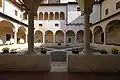 Le cloître, de forme rectangulaire, a été construit au début du XVIe siècle. Il est composé d'un ordre de colonnes ioniques en calcaire blanc véronais qui, du côté nord, est surmonté d’un autre ordre, cette fois de colonnes doriques, qui constitue une loggia.