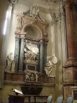 L'autel colossal, en marbre rouge de France et de Cottanello, est surmonté par La Justice de Michel Anguier et par La Force de Leonardo Reti.
