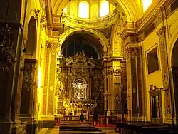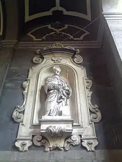 La coupole est peinte de fresques de Francesco de Mura; on remarque dans une chapelle de gauche La Crucifixion de Giacinto Diano.