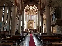 À chaque nef correspond une abside. Au centre, dans le chœur, se trouve le monument funéraire d'Agostino Onigo (XVe siècle), précieux ouvrage sculptural complété par des fresques d'attribution difficile; les sculptures sont attribuées à Giovanni Buora ou Pietro, Antonio et Tullio Lombardo, les fresques à Lorenzo Lotto, Giovanni Buonconsiglio et Girolamo Pennacchi, avec la collaboration de Giovanni Matteo de Trévise . Le retable du maître-autel, de Marco Pensaben, dit « Maraveia », achevé en 1521 par Giovanni Gerolamo Savoldo, représente La Madone trônant avec des saints et un ange musicien.