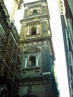L'église possède trois vastes nefs. Elle abrite les tombes de Dionigi dei Roberti, théologien et diplomate mort en 1342, de Nicolo Jommelli, compositeur du XVIIIe siècle, et d'autres. L'église est fermée depuis 1980 et les travaux de consolidation sont lents et épisodiques. Un certain nombre d'œuvres d'art ont été volées, d'autres ont disparu. Toutes les autres sont désormais dans un dépôt[1]. Les corniches de la façade, les murs du clocher sont dans un état dégradé. Un bloc de piperno du clocher s'est écroulé sur la rue en . Les fresques de la sacristie et du cloître (à plan carré avec seize colonnes) de Giacinto Diano sont abîmées.