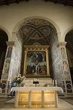 - le retable du maître-autel avec l'Incoronazione della Vergine, santi e angeli musicanti de Piero Pollaiuolo (1483),