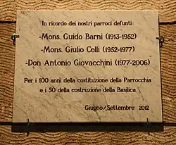 Pour l'ériger, on a préalablement détruit l'église néoclassique de Luigi de Cambray Digny construite entre 1822 et 1833 et nommée paroisse le . L'édifice d'origine était précédé d'une simple façade blindée par un portique ionique et éclairée par une fenêtre semi-circulaire de dérivation thermique. Ce qui reste de l'ancien pronaos de l'église de Cambray Digny, grâce à une intervention convenue entre l'administration communale (le maire Ettore Severi) et le Lions Club, est visible dans le parc de la Villa Forini Lippi (it).
