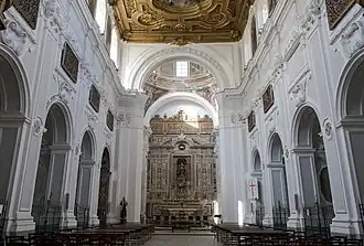 Une église existe déjà sur ce lieu au IXe siècle. Elle est entièrement reconstruite au XVIIe siècle en style baroque par Bartolomeo Picchiatti et réaménagée à la fin du XVIIe siècle par Arcangelo Guglielmelli. Elle possède une nef unique et quatre chapelles latérales[1].