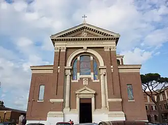 L'église est située sur une hauteur, sur la seule colline de la plage de Lido di Ostia, place Regina Pacis. Elle est précédée d'une rampe d'accès en escalier constitué d'une volée de marches. La façade, en brique et travertin, est orientée en direction de la mer.