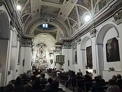 Elle est constituée d'une nef unique voûtée. Les lunettes et la coupole sont entièrement revêtues de fresques du XVIe siècle, inspirées du style de Corenzio.