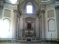 À l'intérieur, le mur d'autel de stuc est de la main de Giuseppe Scarola, les ornementations des pilastres et de la contre-façade de Giuseppe Ricciardella en 1731. Le maître-autel de marbre (remplaçant l'ancien de stuc) est un chef-d'œuvre dessiné par Ferdinando Sanfelice[8] sur commande de la prieure, Anna Sanfelice, en 1743 et réalisé par le marbrier Domenico Astarita[9]. L'autel de droite est dédié aux épousailles de la Sainte Vierge, et celui de gauche à la Crucifixion.