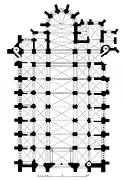 L'architecture intérieure indique qu'elle a pris pour modèle celle du Nord de la France (voir plan de l'abbatiale).