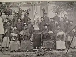 Les missions catholiques reprirent au milieu du XIXe siècle avec les lazaristes (dont une figure notable est Jean-Gabriel Perboyre), ou - de nouveau - les jésuites[15], et surtout après la première guerre de l'opium, dans les zones côtières ; le traité de Huangpu (ou Whampoa en cantonais) donnant aux français les droits de construire des églises, d'établir des cimetières et d’évangéliser. Le chef de la révolte des Taiping s’inspira partiellement des enseignements des missionnaires pour construire l'idéologie de son mouvement. Des émeutes xénophobes ont lieu régulièrement contre les concessions étrangères et en premier lieu contre leurs œuvres sociales (massacre de Tientsin par exemple), fondées par les missionnaires. Le point culminant est atteint avec la révolte des Boxers en 1900 et les cinquante-cinq jours de Pékin. Les pavillons noirs sèment la terreur. De plus le pays, frappé par la pauvreté et la violence, est régulièrement ravagé par des inondations, typhons, disettes, famines, épidémies de peste ou de choléra, consommation de psychotropes (opium) et par le phénomène des infanticides (notamment féminin). Chaque crise est l'occasion d'accuser dans la population les « diables de chrétiens ».