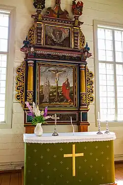 Le retable peint en 1632 a été apporté par Casper Wrede, propriétaire du manoir de Peippola, de la guerre de Trente Ans[2]. Les peintures murales ont été réalisées par Valentin Betge en 1679[2].
