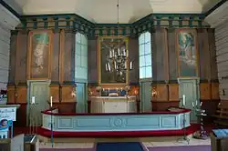 Le retable représentant le Christ en croix est peint par Gustav Holmqvist en 1839. À sa droite se trouve une peinture de la Vierge Marie tenant l'enfant Jésus, et à gauche se trouve une image de l'ascension du Christ.