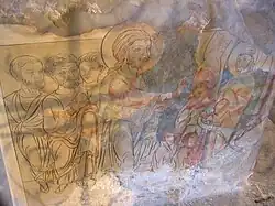 - ↑ Il se trouve aujourd'hui au mur nord de l'église