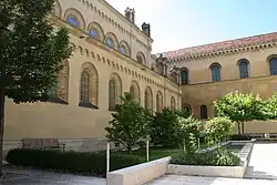 Contrairement à ce que suggère la vue extérieure, l'intérieur du bâtiment est voûté de dômes - basé sur l'architecture byzantine. Les colonnes sur les côtés portent des galeries. En renonçant aux mesures de conservation après la destruction de la Seconde Guerre mondiale, la peinture colorée originale des voûtes de style nazaréen, ainsi que le revêtement en marbre des murs et du sol en marbre, ont été perdus, à l'exception de petits vestiges. Les peintures provenaient de Heinrich Maria von Hess et de son élève Joseph Schwarzmann, qui, en tant qu'ornementateur, créa le premier de ses célèbres décors ultérieurs. Aujourd'hui les murs et les voûtes ne sont pas enduits, les surfaces en briques ne sont pas traitées. Pour des raisons de solidité, les piliers ont été construits avec des couches de tuf, qui est maintenant visible sous la forme d'un motif rayé. Les endroits où les dommages causés par les briques insérées ont dû être compensés sont clairement reconnaissables comme nouveaux par les surfaces plus lisses. Cela s'applique également aux autres nouveaux luminaires en acier, en verre et en béton.