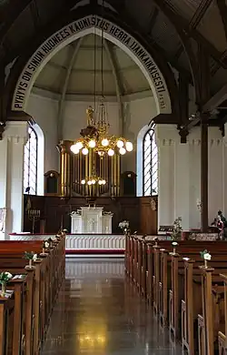 L'orgue de la manufacture Hill & Son a été achetée par von Nottbeck à Saint-Pétersbourg et construit à Londres dans les années 1850. Au début, l'église avait des rangées uniformes de bancs, qui ont par la suite été séparés par l'allée centrale. L'extérieur est décoré de plusieurs croix[2].