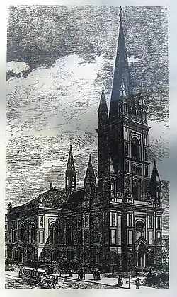 L'église de Jérusalem est mentionnée pour la première fois en 1484 sous le nom de Capelle Hierusalem. Un citoyen berlinois du nom de Müller a fait don de la chapelle, qui se trouve encore à l'extérieur de la ville, en souvenir de son pèlerinage à Jérusalem et l'a dédie à Saint-Marie, Saint-Sébastien et Saint-Fabien. En 1679, le conseiller du prince électeur von Martitz fait une fondation supplémentaire pour la construction d'un petit hôpital pour veuves et fait agrandir la chapelle en 1687-1689 par Giovanni Simonetti (de) en 1687-1689. En 1725-1731, une nouvelle construction est érigée d'après les plans de Philipp Gerlach. Comme l'église est désormais devenue le lieu de culte le plus important pour les habitants de Friedrichstadt, luthériens que calvinistes, l'église s'appelle désormais «l'église de Friedrichstadt». En 1747, la partie supérieure de la tour, construite en bois mais mal réalisée, doit être démontée et remplacée par un toit de fortune. En 1836, Friedrich Wilhelm Langerhans rénove l'édifice, dont les plans sont mis en œuvre par Carl Scheppig (de), élève de Schinkel et son chef de chantier. Ce n'est qu'en 1838 que l'église est à nouveau dotée d'une flèche élancée, dessinée par Karl Friedrich Schinkel. En 1875, l'église est fermée pour cause de délabrement. Edmund Knoblauch (de) (1841-1883)[1] donne à l'église sa dernière forme de 1878 à 1879. En raison de l'expansion du quartier des journaux et du départ de la population résidente, le nombre de paroissiens diminue rapidement et les 1366 places assises ne peuvent bientôt plus être remplies. En 1941, l'église est vendue à l'Église orthodoxe roumaine de Berlin.