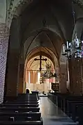 Quatre paires de piliers divisent la nef en trois vaisseaux. Les voûtes sont de simples voûtes croisées et présentent des peintures primitives. L'intérieur de la nef est moderne, à l'exception du sarcophage de saint Henri restauré à la fin des années 1960 et de la chaire offerte en 1640[3],[2].