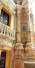 La façade s'écarte également du modèle le plus suivi du Rio de Janeiro colonial car elle n'est pas flanquée de deux tours, le clocher de l'église étant situé à l'arrière du bâtiment. Actuellement, les quatre niches de la façade abritent des statues des évangélistes ramenées d'Italie en 1926. Les deux statues en bois originales dans les niches supérieures, représentant Saint Matthieu et Saint Jean l'Évangéliste, ont été réalisées par Mestre Valentim et se trouvent aujourd'hui au Musée historique national.