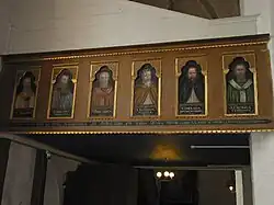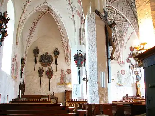 Le point culminant de la construction de l'église est probablement le texte de la peinture à la chaux de 1472 autour de la fenêtre de la coquille[1].
